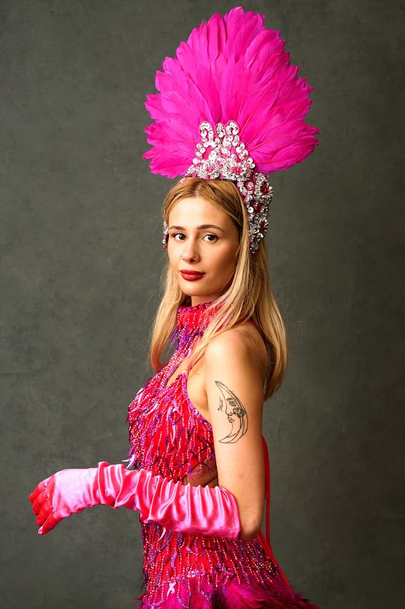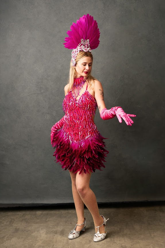 Magenta Showgirl Costume for Hire | Feather Plumes Sequin Zoe London Costumes for Hire